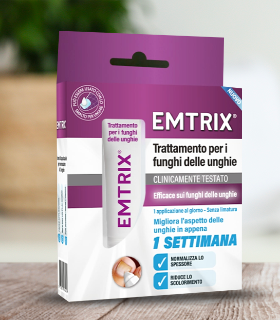 Emtrix® tratta le unghie affette da infezione fungina o psioriasi e ne migliora l’aspetto.